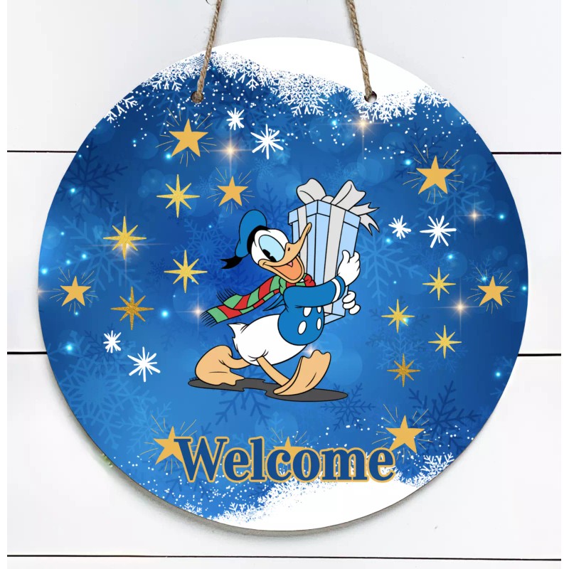 Handmade Donald Duck Christmas Welcome 10" Metal Round Door Sign