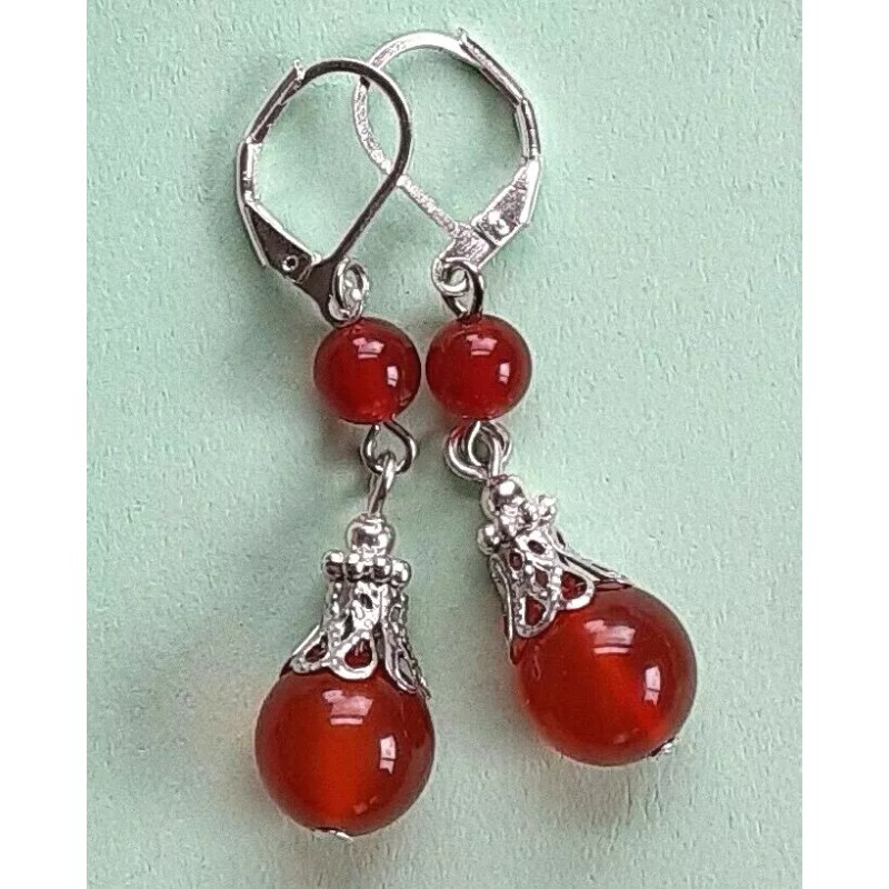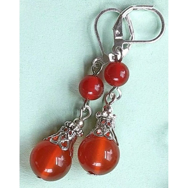 Handmade double CARNELIAN dangle earring SP LEVERBACK artisan