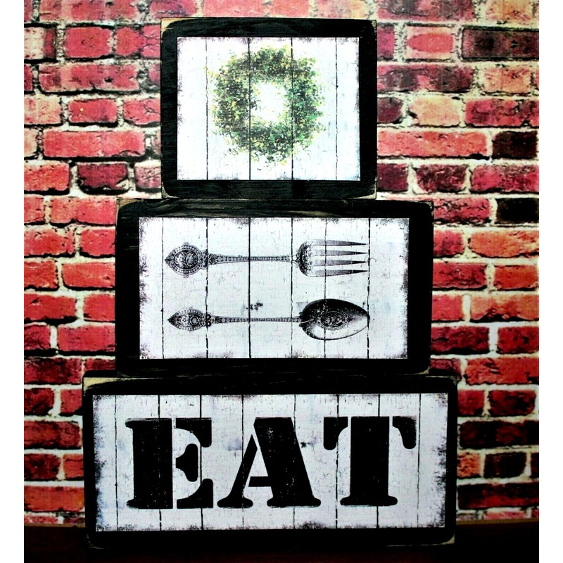 handmade EAT w/ Fork and Spoon Farmhouse Kitchen Stacking Blocks Wooden Sign Set Decor