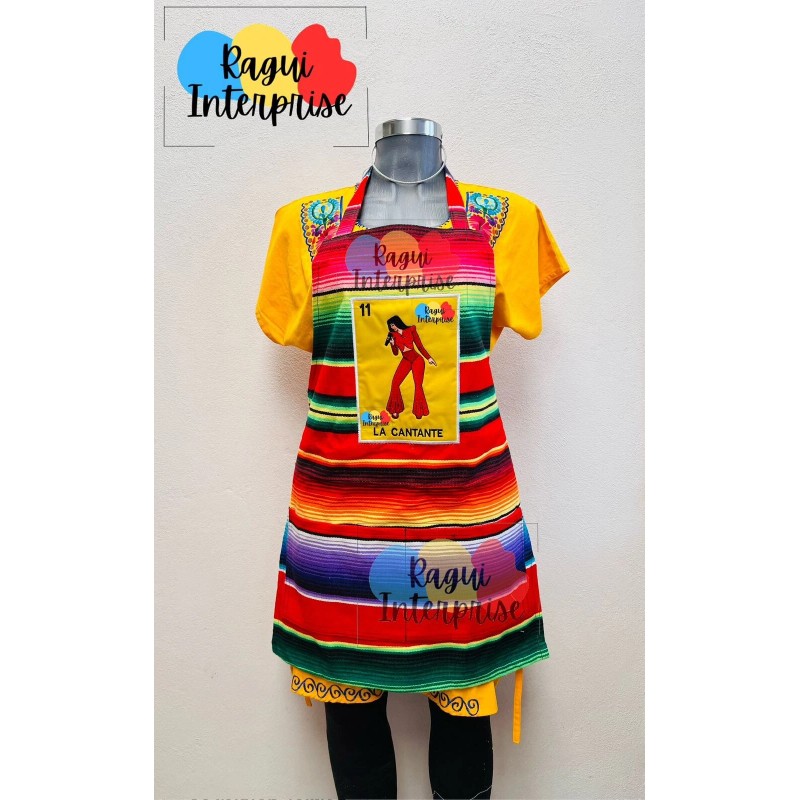 Handmade EMBROIDERED ,LA CANTANTE , LOTERIA , MANDIL MEXICANO , SARAPE , APRON, DELANTAL