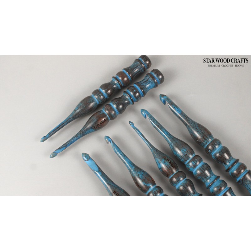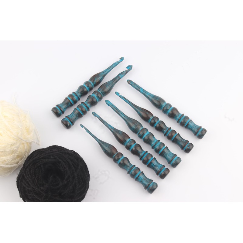 Handmade Ergonomic Wooden Crochet Hooks, (Set of 7) Crochet Hook for Arthritic Hands, Smooth and Comfortable Grip Handle, Knitting Yarn Gift for Her (Blue), MEDIUM, WCH 02