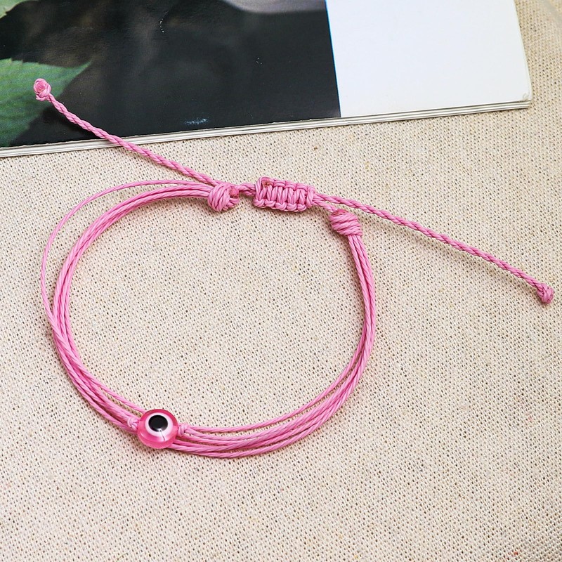 Handmade Evil Eye Colorful Adjustable Braided Thread String Bracelet Friendship Couple Sideways Lightweight Rope Amulet Turkish Lucky Protection Jewerly for Women Men-pink