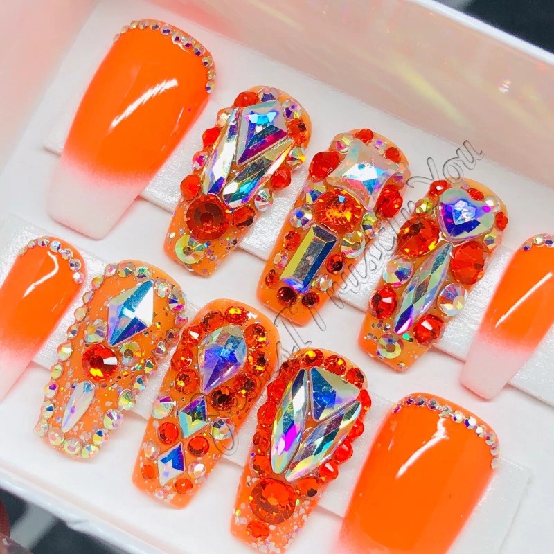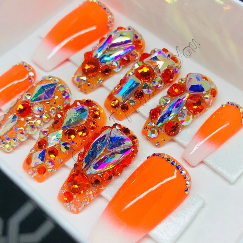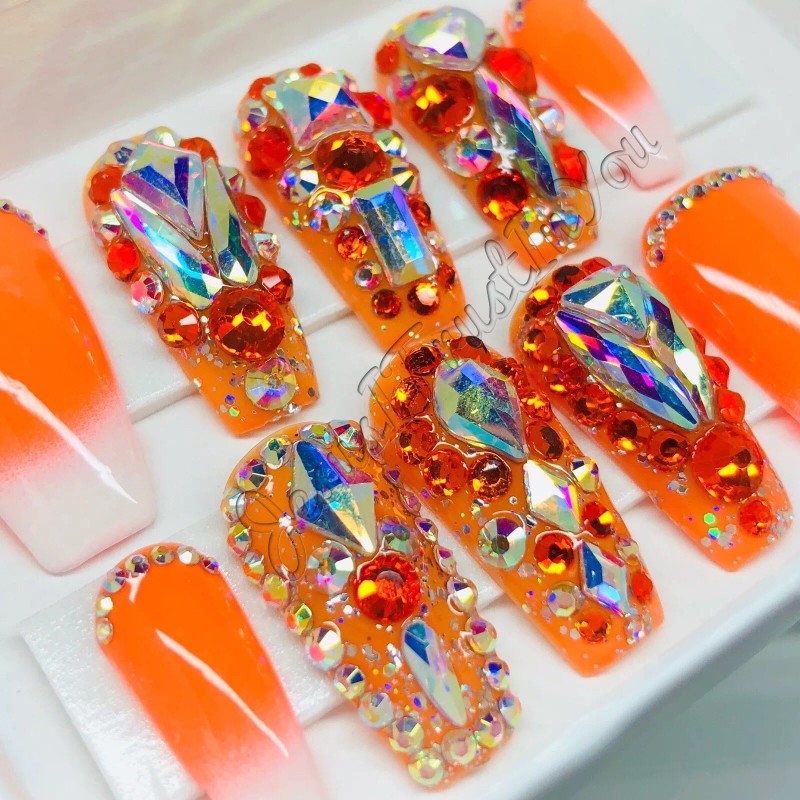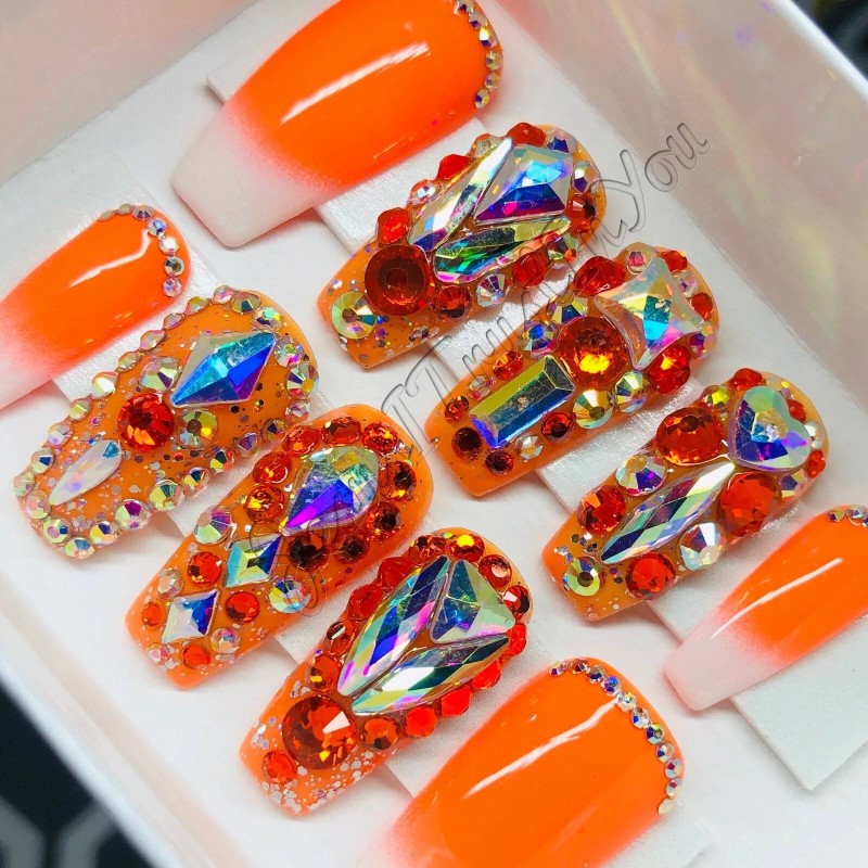 Handmade FALL SPARKLE - REGULAR BALLERINA - NEW GEL PRESS ON NAILS GLUE ON N...