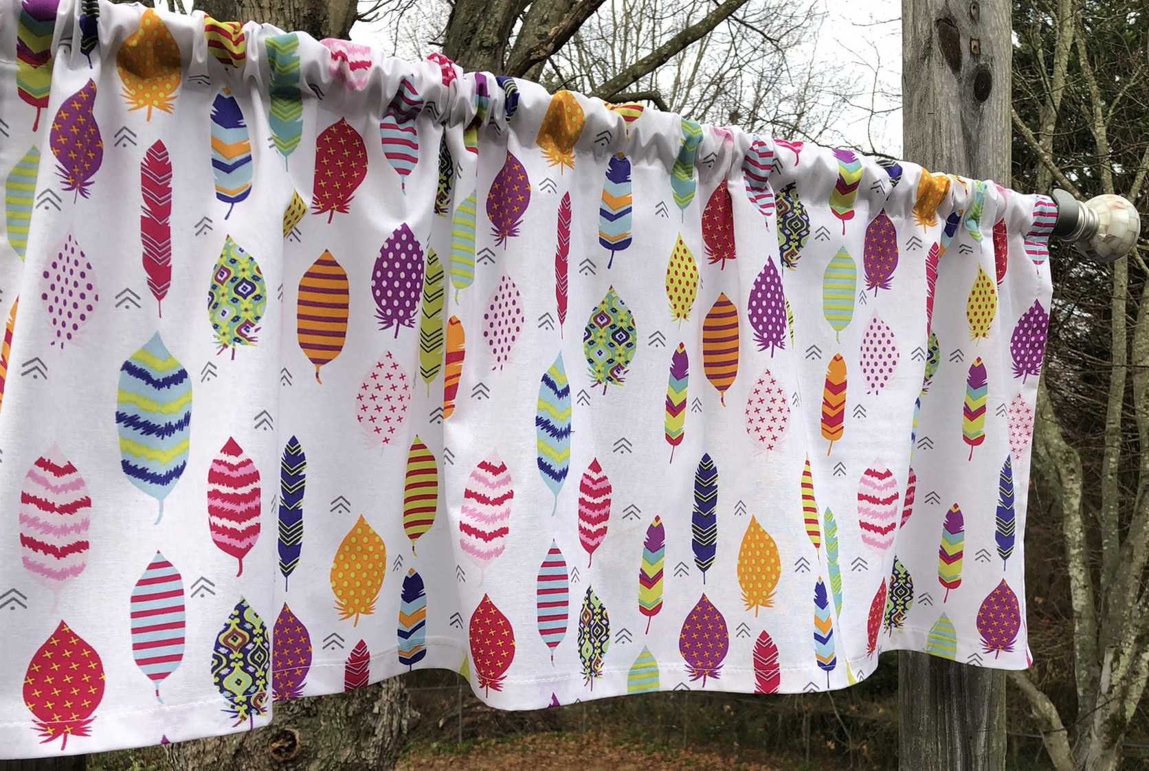 Feather Valance Tribal Bird Feathers on White Background Handcrafted Curtain Valance