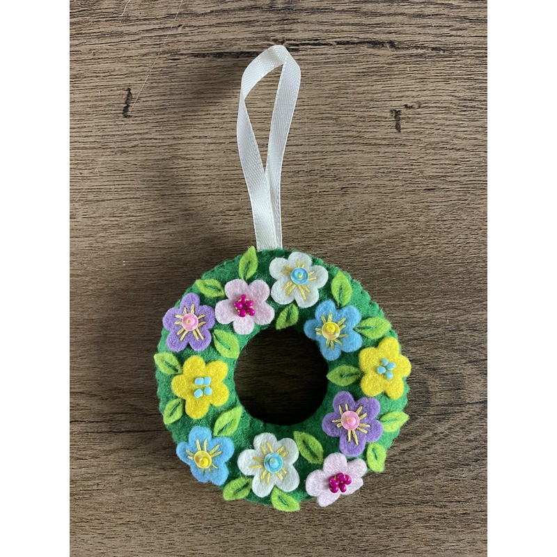 Handmade felt Easter decoration, hanging spring ornament - wreath