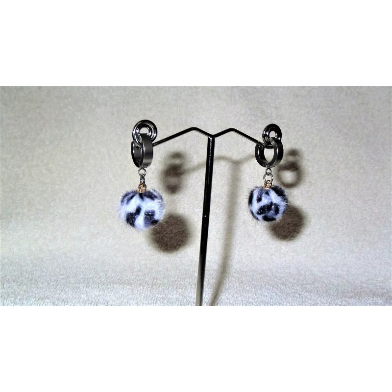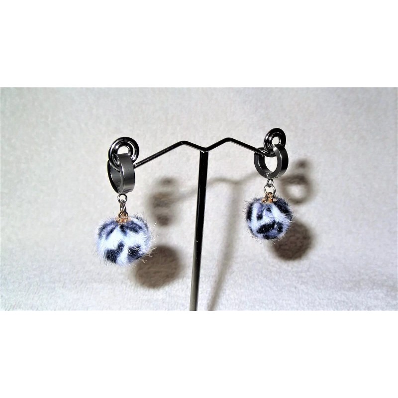 "Handmade" Fuzzy Panda Print Dangle Ball Pair of Earrings Jewelry Piercing Handmade Hoops