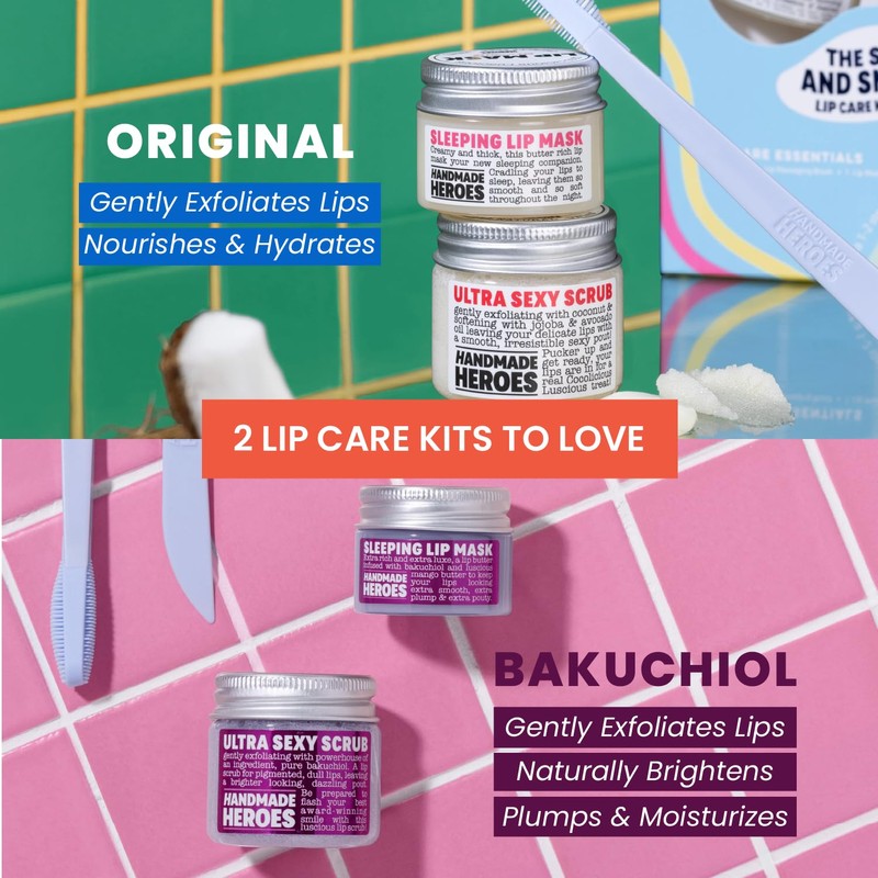 Handmade Heroes 100% Natural Lip Scrub and Lip Mask, Vegan Conditioning Coconut Lip Exfoliator - Gentle Exfoliant, Sugar Lip Polish and Lip Exfoliator Scrubber for Chapped and Dry Lips (Original 3pc Set)