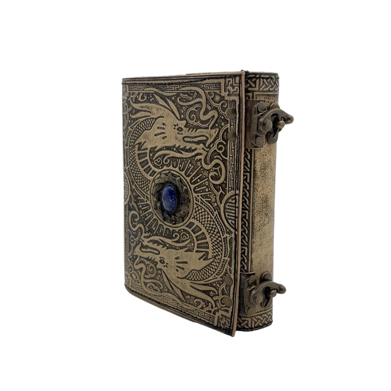 Handmade Leather Double Dragon Journal Blank Spell Book Of Shadows Writing DND Notebook Diary, Journal With Lock Clasp Prop Vintage journal Antique Deckle Edge Paper Witch Wiccan daily Notebook 7 X 5 Inches