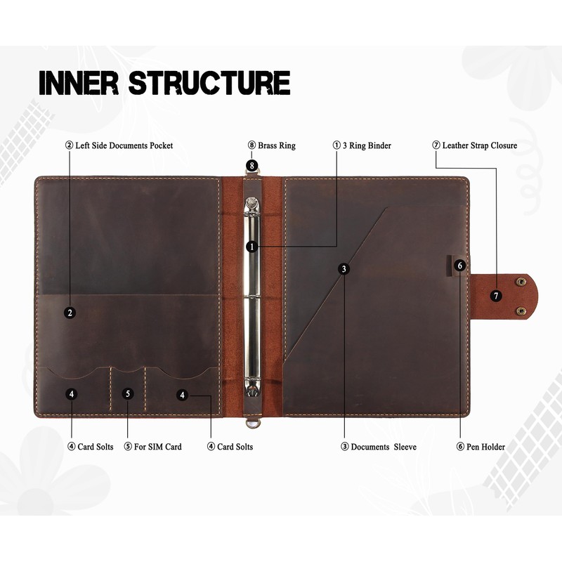 - Crafted from premium full-grain leather, this multipurpose music sheet folder is perfect for musicians and professionals. Featuring two spacious A4 pockets for sheet music storage or documents, plus card slots and a SIM card slot for added convenience
