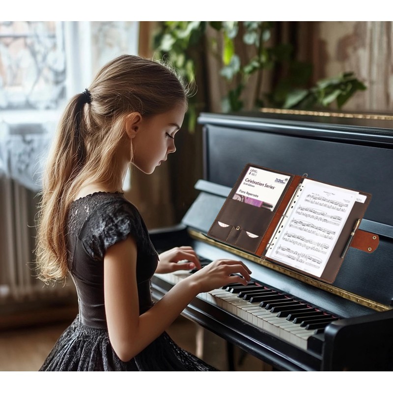 - Designed for musicians, this sturdy sheet music binder lays flat on piano stands for optimal viewing. Durable snap buttons keep your music secure, while the detachable shoulder strap offers hands-free convenience—perfect as a music folder for sheet music during rehearsals, performances, or daily use