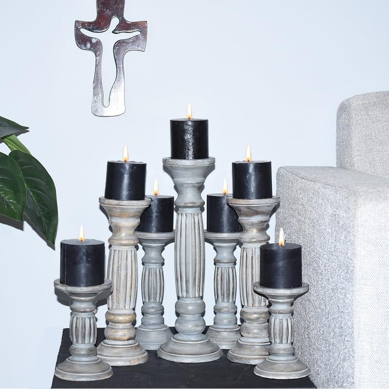 Handmade Mango Wood Eco-Friendly Traditional Antique Dusk Set of Seven 6",9",12",15",12",9" & 6" Pillar Candle Holder