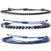 Handmade Natural Stone Beaded Healing Bracelet Gift for Men Adjustable Rope String Bracelet (DarkBlue/Coffee Jasper, Adjustable)