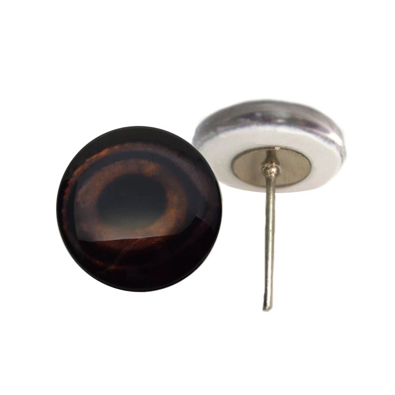 They are made with high quality, handmade glass eye cabochons, attached to silver toned wire pin posts.