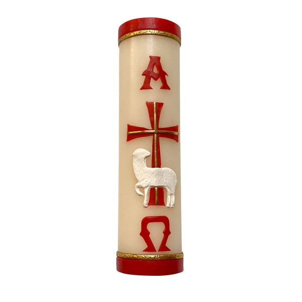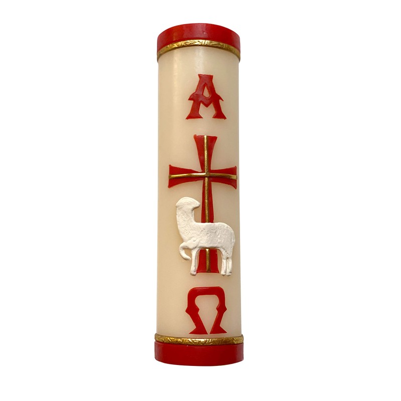 Handmade Paschal Red Candle Alpha Omega Cross Sheep