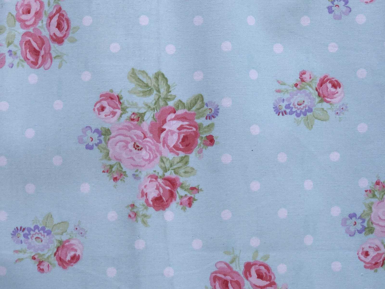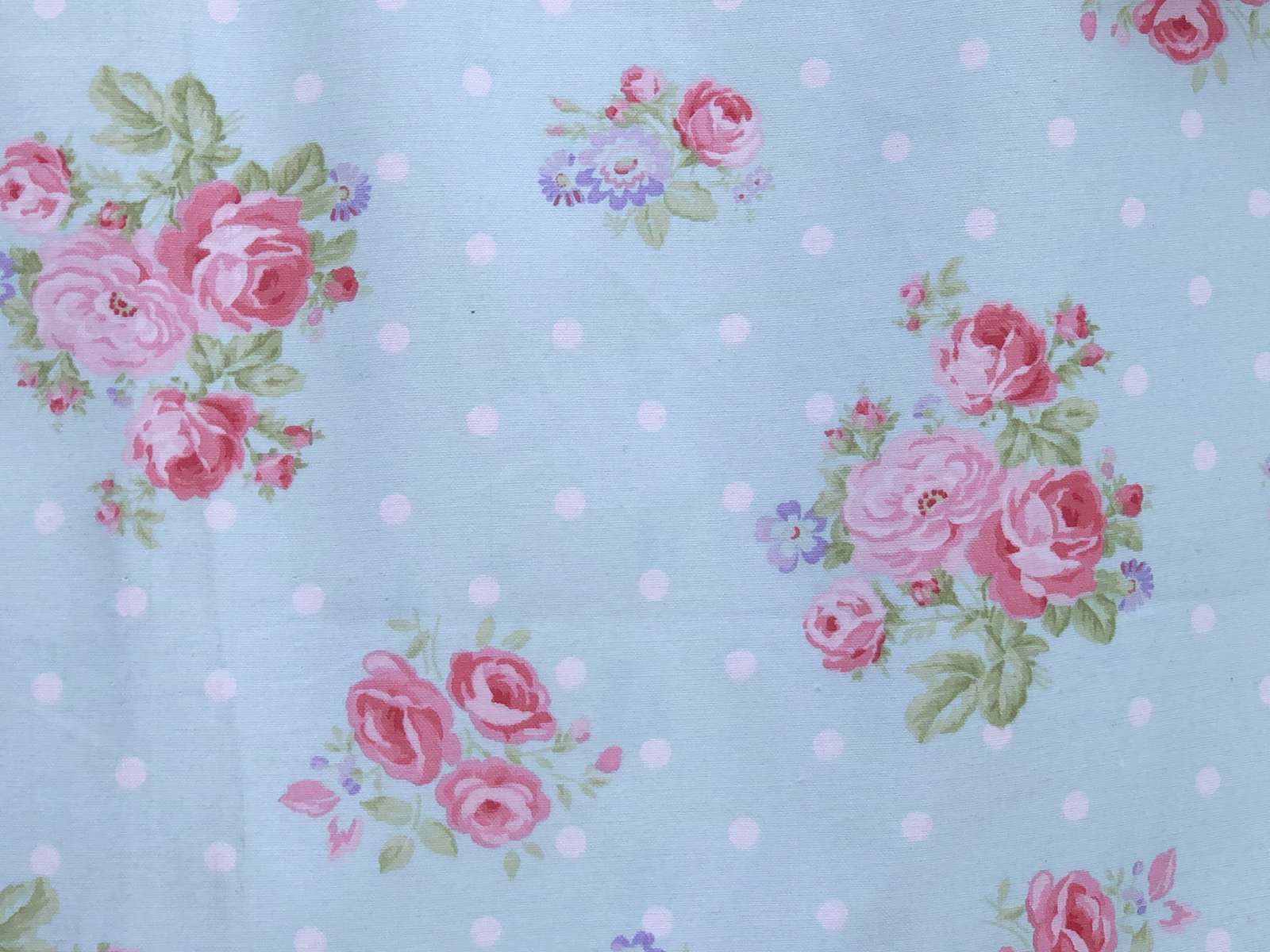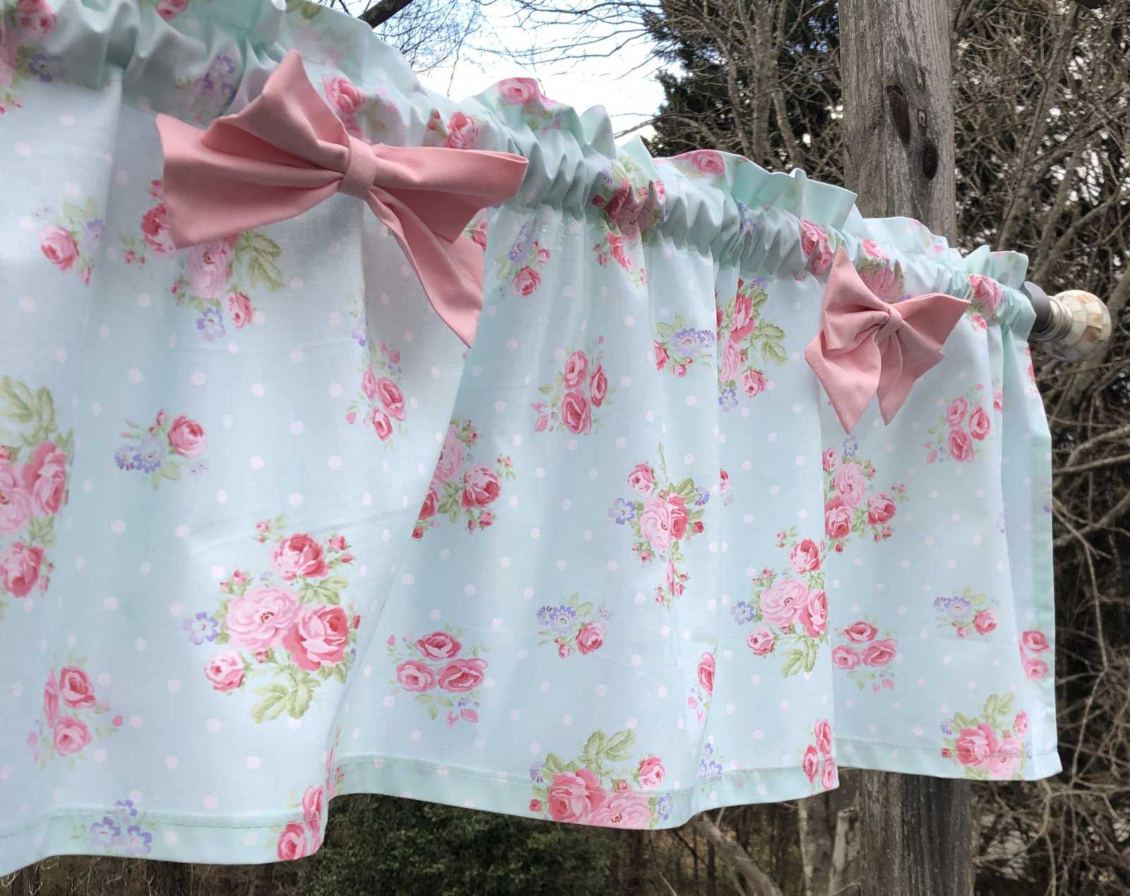 Pink Roses Light Blue Valance with Pink Bows Shabby Chic Floral Window Curtain t3/9