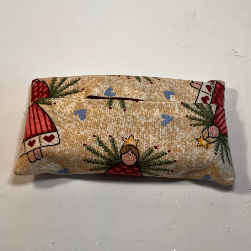 Handmade Pocket Tissue Holder Handmade Christmas Angels Rustic Double Sided 5x3 New