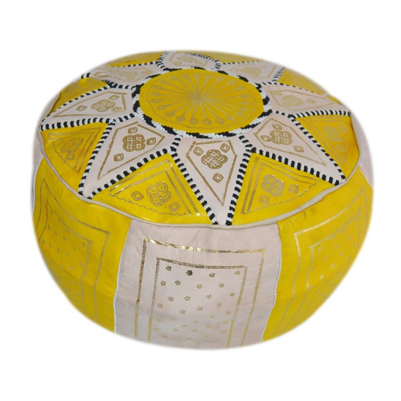 "Handmade" Pouf Moroccan Hassock Pooff Leather Pouff Ottoman Footstool MED Beige Yellow
