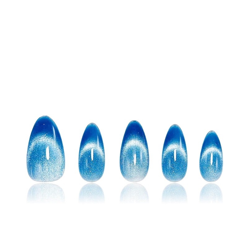 Handmade Press on Nails Medium Almond Cat Eye Fake Nails for Women's 10pcs (Light Blue, S)