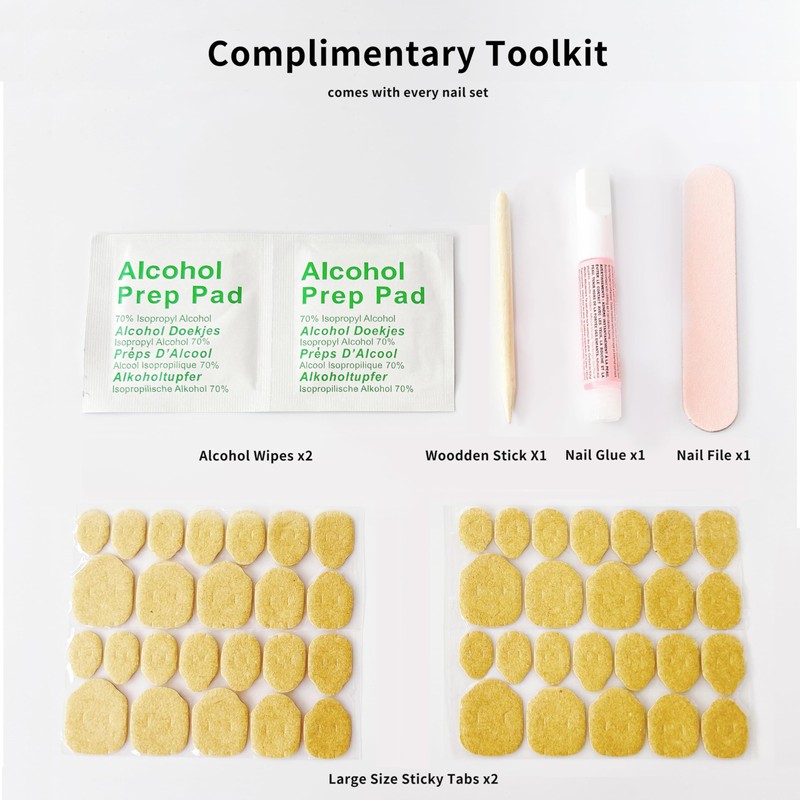 This Product Includes 10 Pcs Of Press on Nails , That Fits Your Every Finger. The Fake Nails Can Stay Longer If You Cleaned Your Own Nails Carefully Before Use, And Avoid Water Within The 2 Hour Of Wearing.