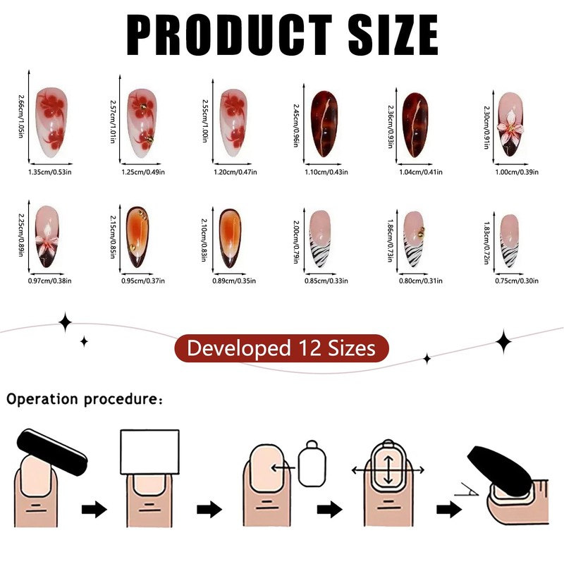 - Multiple Uses: Versatility is a key feature of our medium almond Press on Nails. Ideal for various occasions, from casual outings to formal events, these nails can easily be styled to match your outfit or mood, giving you the freedom to express yourself effortlessly.