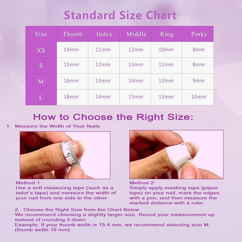 - Wear Duration: If you want to keep your nails lasting for over 14 days, we recommend using nail glue. Please note: after using nail glue, it's recommended to use a nail remover or follow salon removal procedures for safe removal.