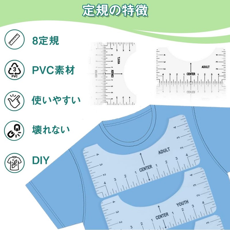 • Universal standard scale T-shirt ruler guide is made of PVC material, lightweight and portable, durable, unbreakable, reusable. The surface of the ruler is clear and has black markings so you can see the fabric clearly during the craft process, which will bring you a more convenient and comfortable experience
