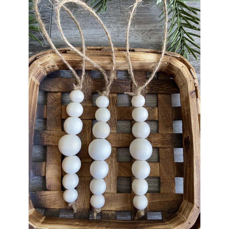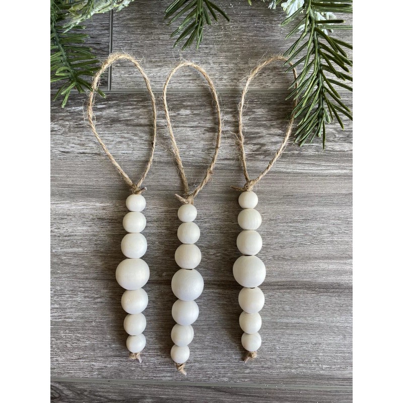 This is for a set of 3 handmade wooden bead Christmas ornaments. These are made with different sizes of wooden beads, the largest in the middle is 20mm. These are about 4” long, not including the twine hanger. These would be great on a tree, hanging on other decor such as a vase or lantern and would also make a cute package topper. No other decor items are included in this listing. Pictures just give a couple of examples on how these could be used. Shipped with USPS First Class Package. Check out my other items. I do combine shipping. First item is full price shipping. Each additional item is .50 additional shipping, with a maximum of $5.00 shipping for all items paid for in the same order! Any questions please ask. Thanks for looking!