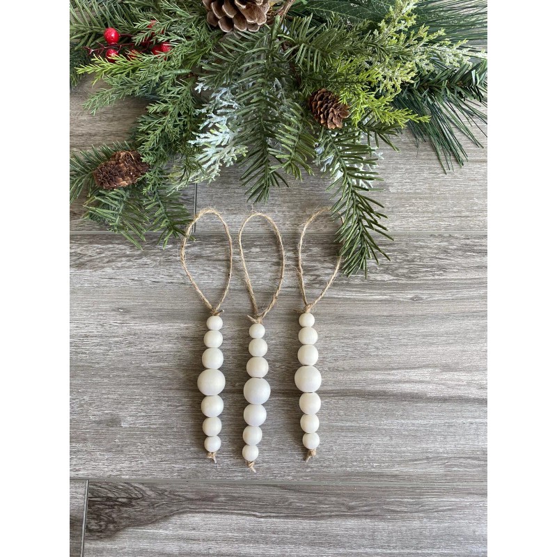 Handmade Set of 3 Natural Wood Bead Christmas Ornaments Decor