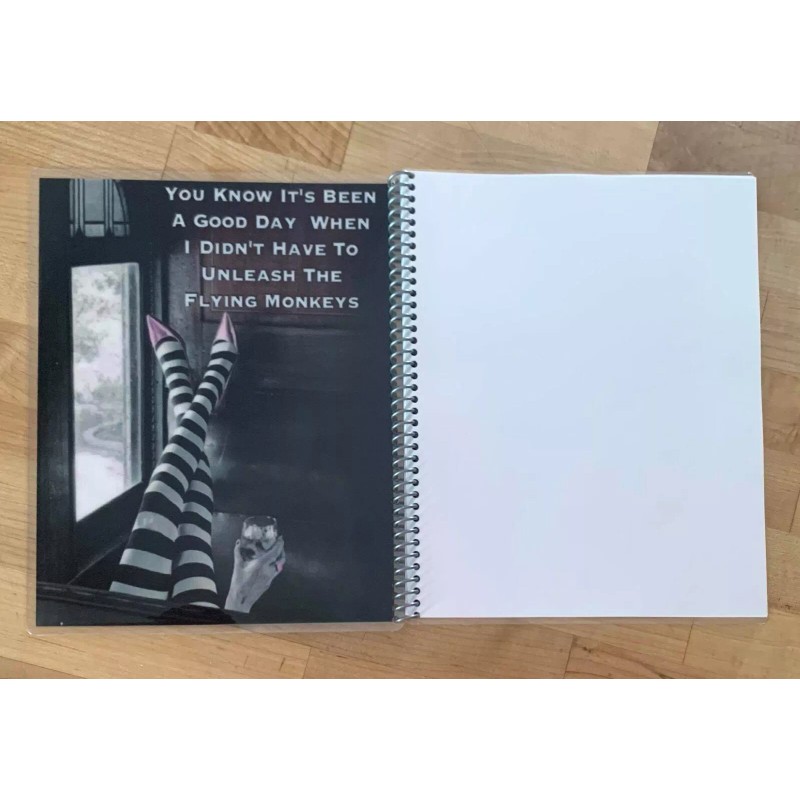 Front and Back Cover Design -- Flying Monkeys Oz Inspired & Pink/Black Stripes -- both are laminated using sturdy 10 mil pouches and edges come with rounded corners.