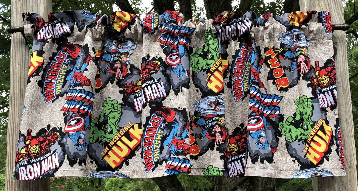 Boys Handcrafted Curtain Valance Sewn From Super Hero Thor Hulk Iron Man Marvel Comics Fabric
