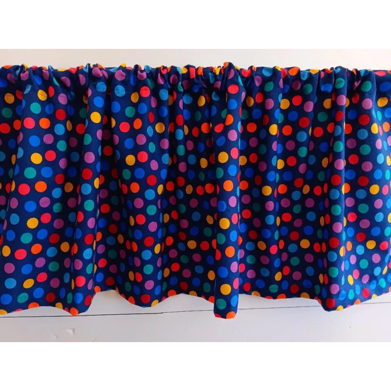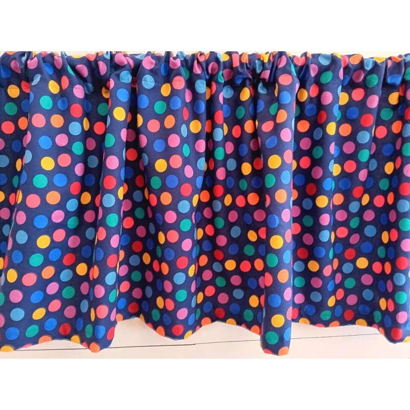 Handmade Valance Multi Color Polka Dots Navy Background Handmade 52"W x 17 NEW