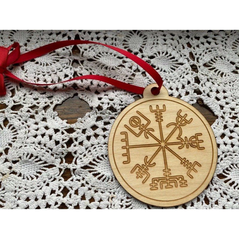 Handmade Vegvisir Viking Compass Protection and Guidance Symbol Wooden Ornament