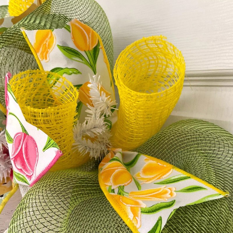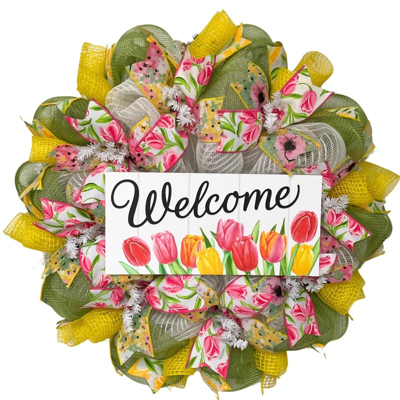 Handmade Welcome Tulips Spring Wreath Handmade Deco Mesh