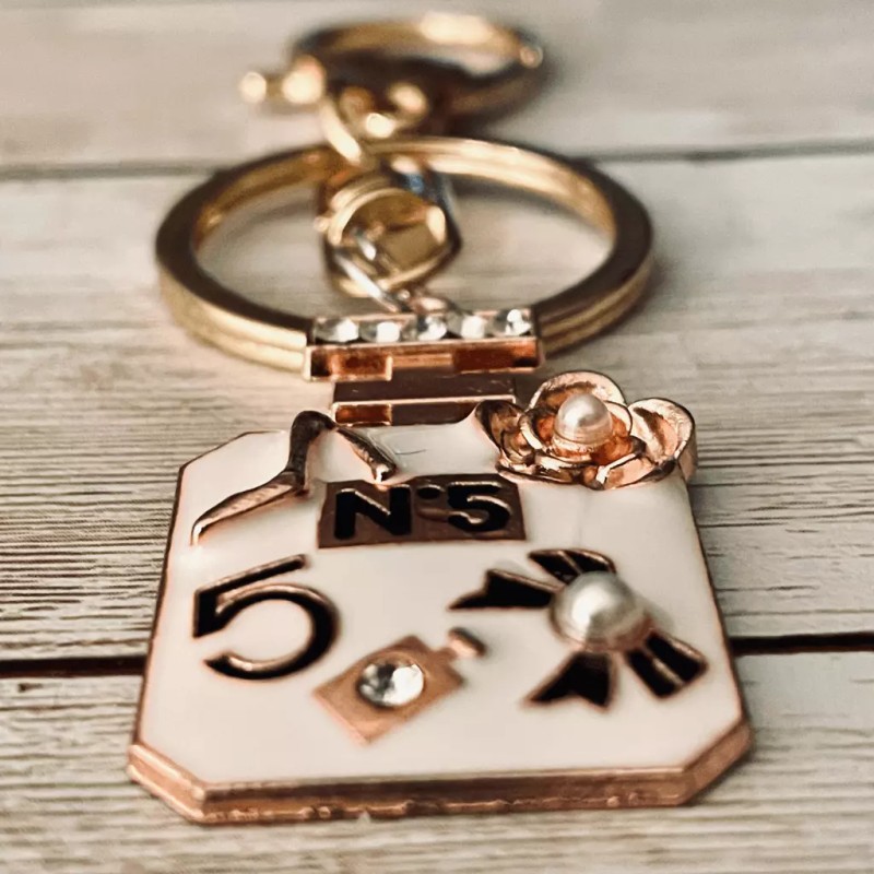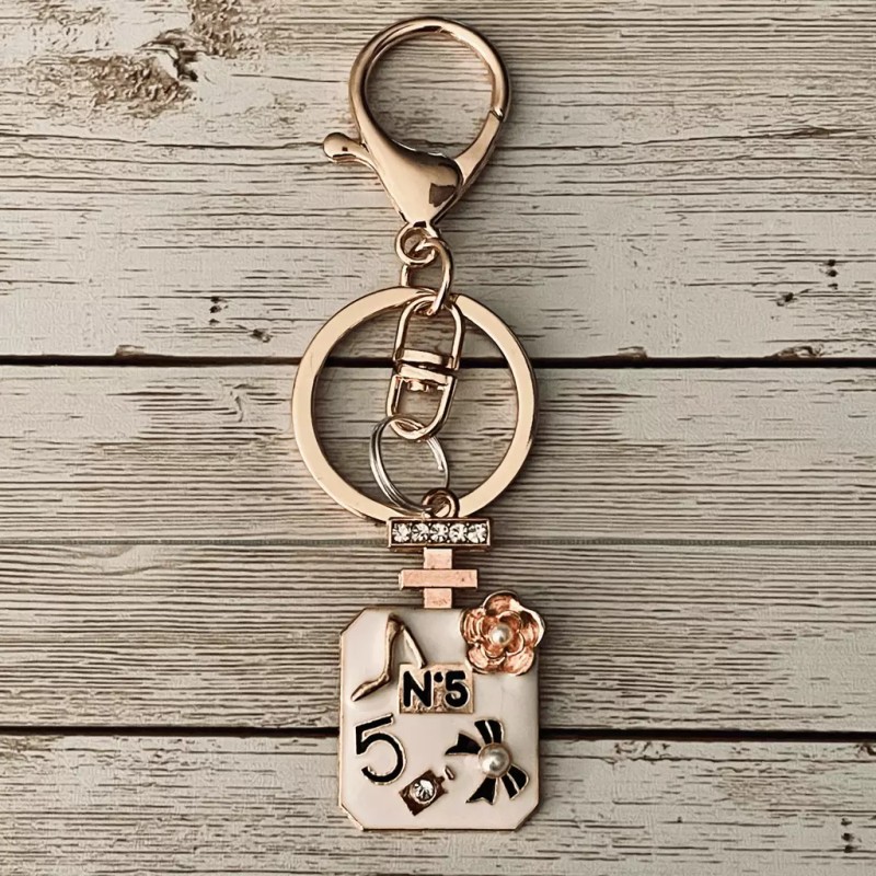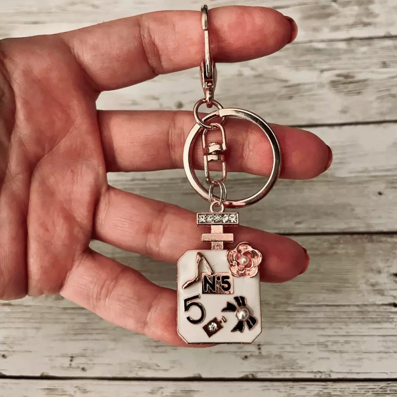 Gold White Fine Perfume bottle Bling Metallic Lobster clasp Hanging Key holder, Key ring, Key Chain