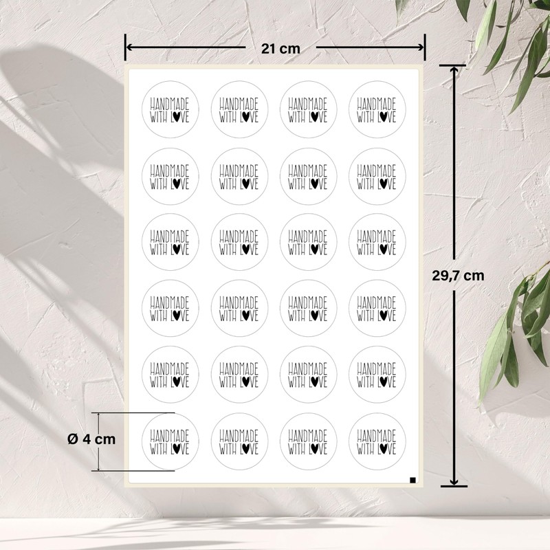 - Handmade with love: you will receive two handy DIN A4 sheets with 48 stickers. The round stickers have a diameter of 4 cm. We print the lettering on self-adhesive recycled adhesive paper with high-quality, textile effect.