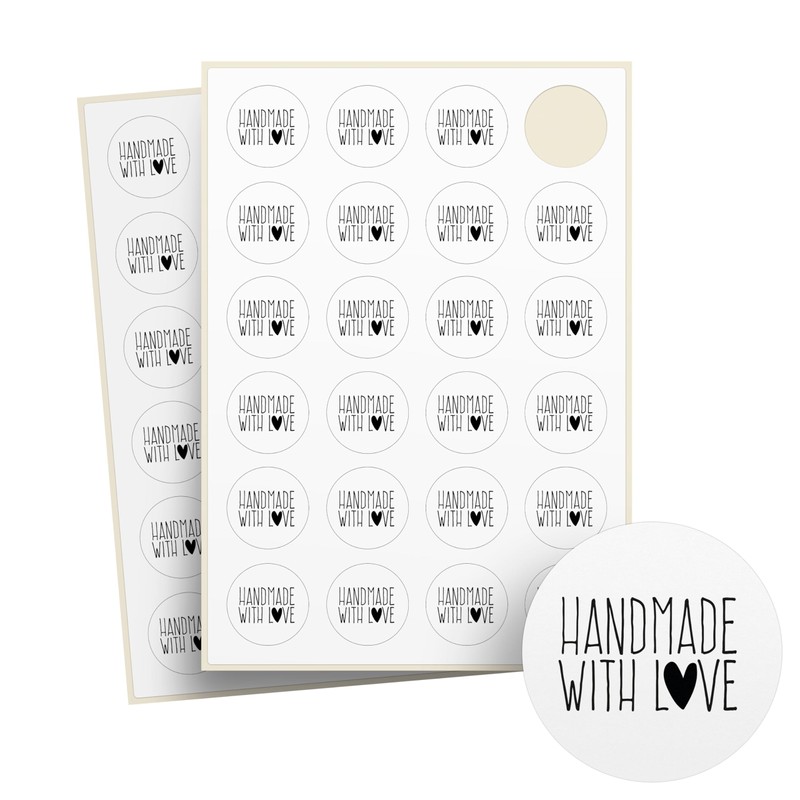 Handmade with Love Stickers, Pack of 48 on Sheet, Recycled Paper, Round, Diameter 4 cm, as Stickers or Labels for Wedding, Christmas, Handmade, Jams, Candles - Love Heart