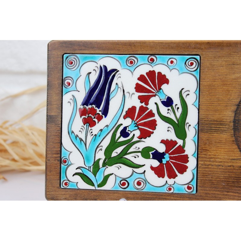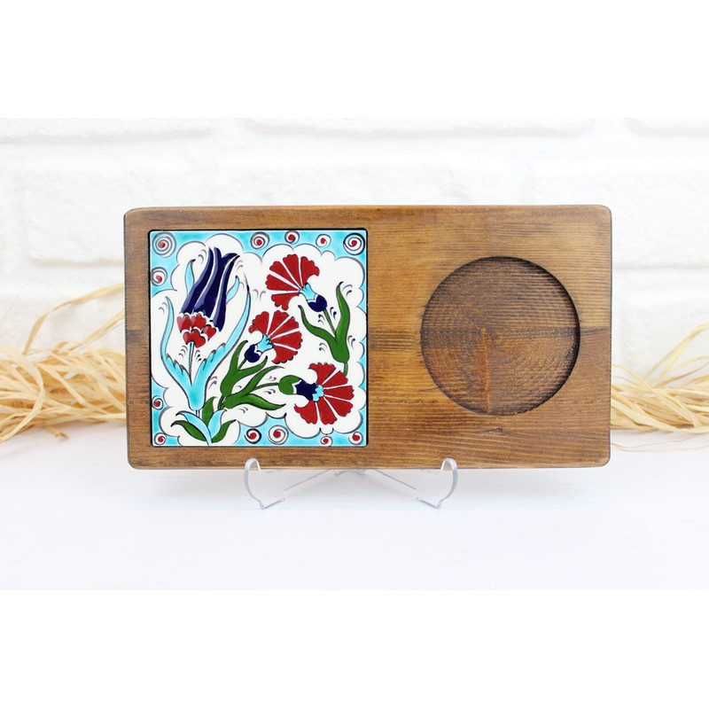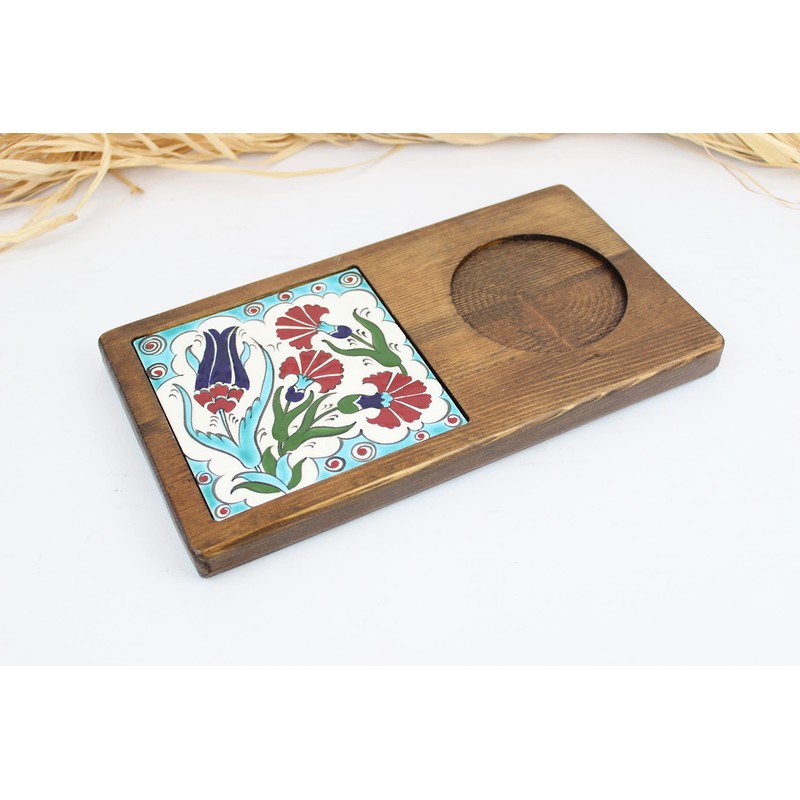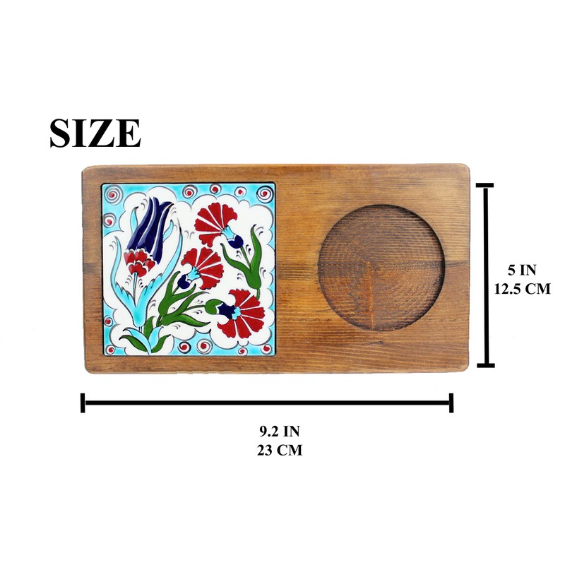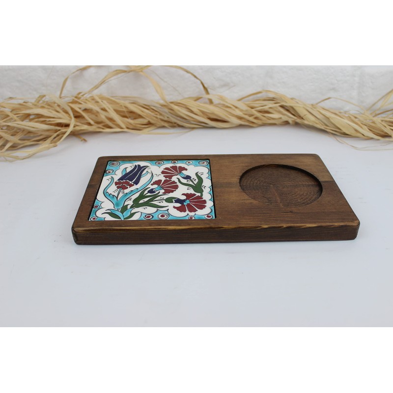Handmade Wooden Tile Tray, Rolling Tray, Coffee and Tea Tray, Ottoman Tile Tray, Wooden Decorative Serving Presentation Tray, Iznik Tile Tray, Boho Ceramic Tray for Home, Coffee Serving Tray for Home