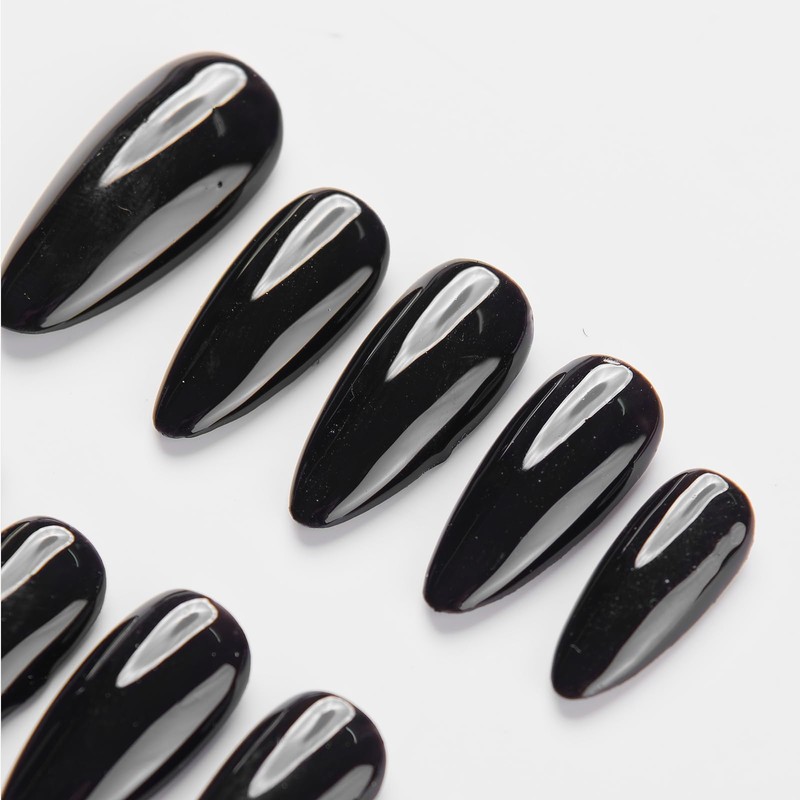 Handpainted Basic Solid Colour Almond Press-on Nails, Summer Nails, Solid Color Nails, Press-on Nails for Birthday, Event, Prom, Party (Black, M)