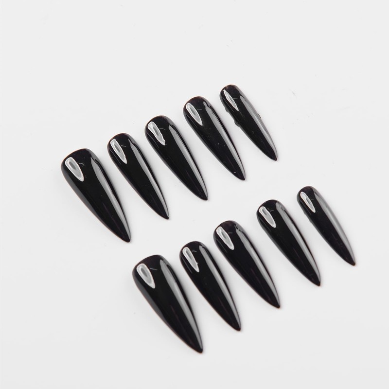 Handpainted Basic Solid Colour Stiletto Press-on Nails, Summer Nails, Solid Color Nails, Press-on Nails for Birthday, Event, Prom, Party (Black, M)