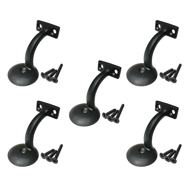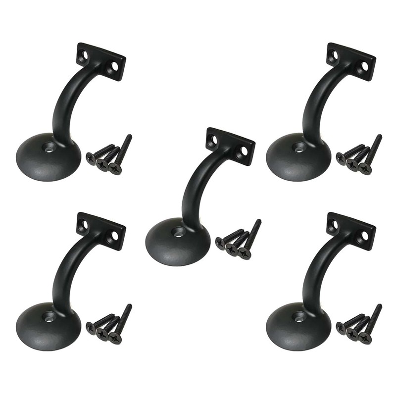 Handrail Bracket Round for Stairways with Mounting Screws - Set of 5 - (Satin Black) - DH-B1