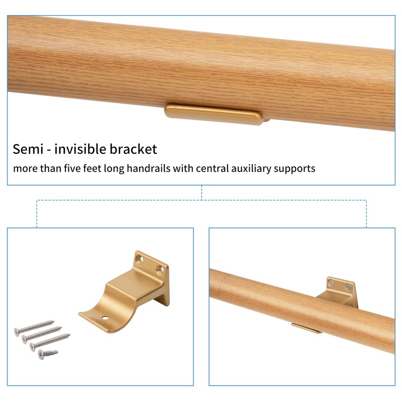 Handrails for Indoor Stairs,Railings,Stairs Handrail,Modern Aluminum Handrail Set, Wall Mounted,Matte Black or Cherry Wood Grain, Rust Free. (Cherry Wood Grain, 13FT)