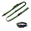 Hands Free Dog Leash +Dog Collar, Bungee for Walking Jogging and Running for Dogs, Professional Lead Walker Harness with Reflective Stitches Adjustable Waist Belt Fits Waist (Green, with Collar)