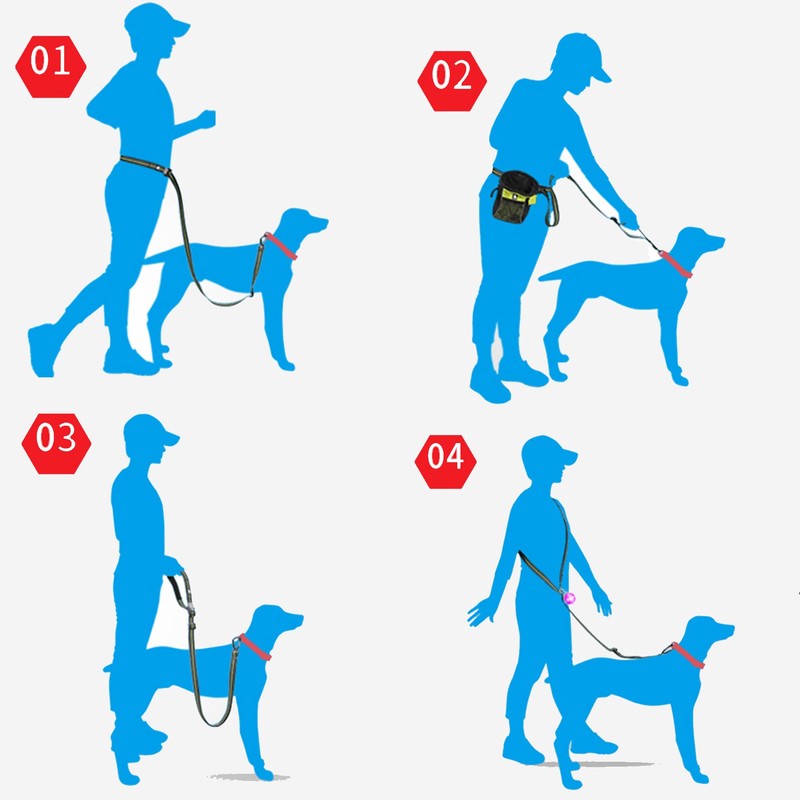 - Flexible bungee:Made for medium & large dogs,the leash that absorbs shocks and allows you to control it without breaking stride. Provided with a strong, yet flexible bungee, and stainless steel clips, this hands-free dog leash is for those of you who like jogging and brisk walking.