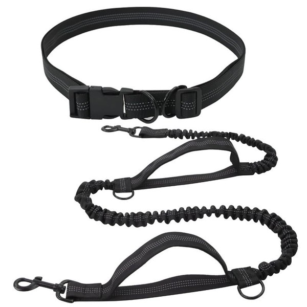 Hands Free Dog Leash, Retractable Dog Leash Running with Dual Bungees for Medium and Large Dogs, Adjustable Waist Belt Stitching Leash for Running Walking Hiking Jogging Biking (Black)