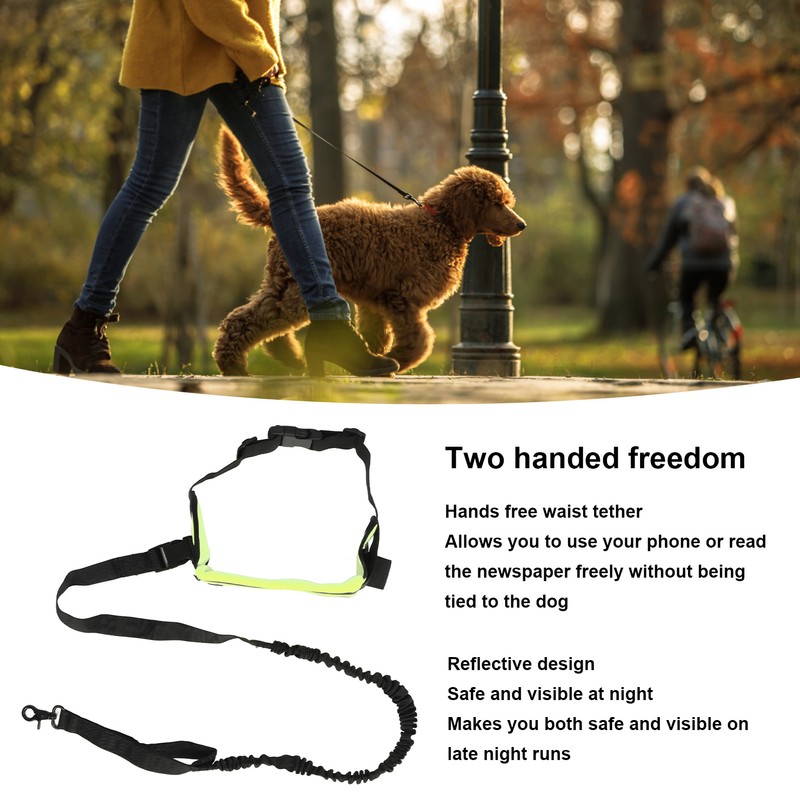 1、High Flexibility: Dog leash has perfect flexibility to reduce the stress of pulling and tugging and absorb sudden changes in the dog's direction. Quickly use your hip handle to guide your dog back onto the track. 2、Enough Space: Dog running leash provides enough space for your dog to run freely in front of or beside you. The collar handle is for more direct control and traffic control of your dog. 3、Reflective Design: Dog running leash belt bag is safe and visible at night with reflective color design, making it both safe and eye catching for you to run late at night. 4、Hands Free Waist Tie: Reflective running belt leash features a hands free waist tie that allows you to use your phone or read the newspaper freely without being tied to your dog. 5、Removable Zippered Pocket: Hands free dog leash features a removable zippered pocket for easy storage and access to your smartphone, keys, poop bags, dog treats and more. 6、Wide Application: Hands free pet dog leash is great for training, walking, jogging, hiking training and running, it's a great add on device.