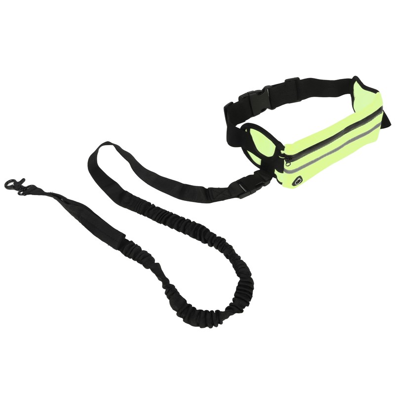 Hands Free Dog Leash Shock Absorption Reflective Dog Running Leash with Zippered Bag for Walking Jogging Running Fluorescent Green