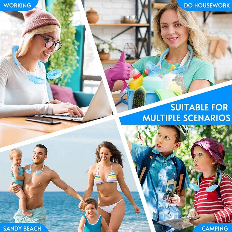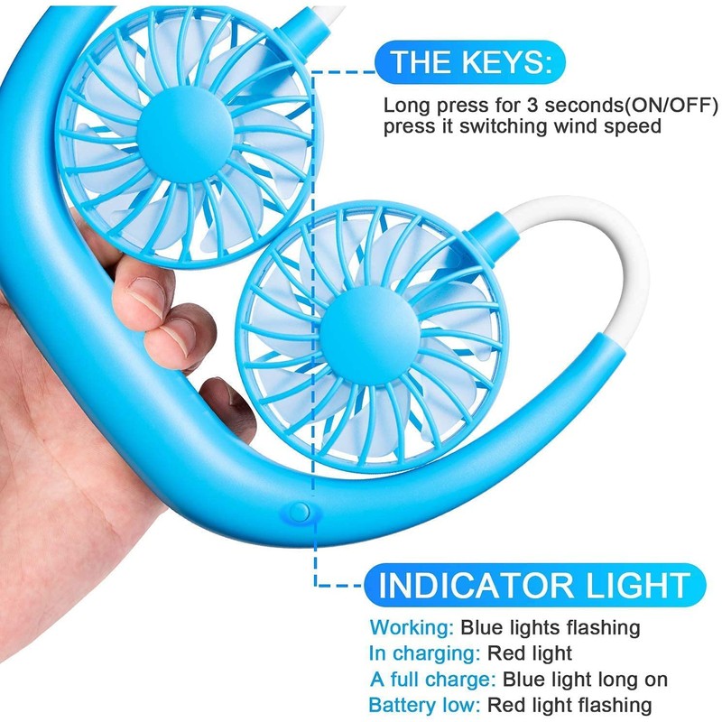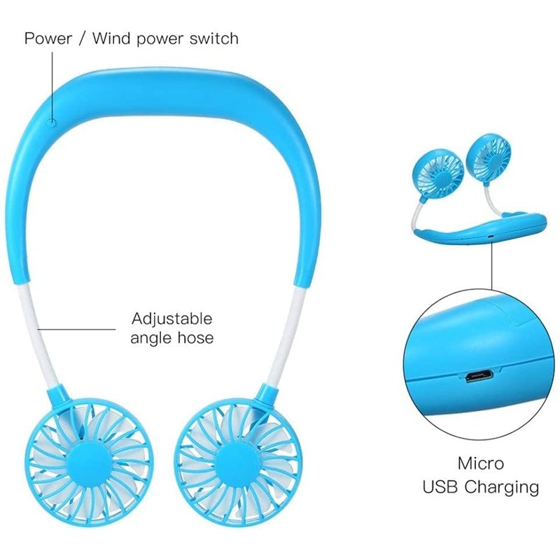 Hands Free Portable Neck Fan - Portable USB Battery Rechargeable Mini Fan with 3 Speeds Modes- Cooler Fan with Dual Wind Head for Home Office Travel Indoor Outdoor (Blue)