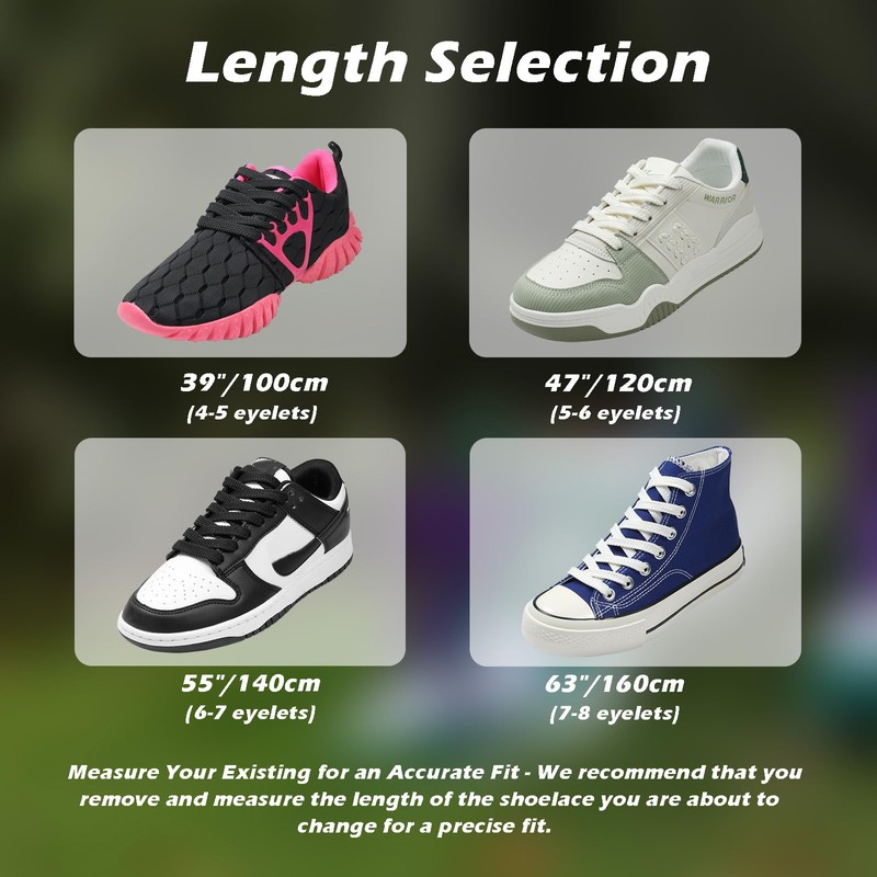 - How to choose - Measure the length of your old laces or count the number of holes in your shoes to find the most suitable length and color.