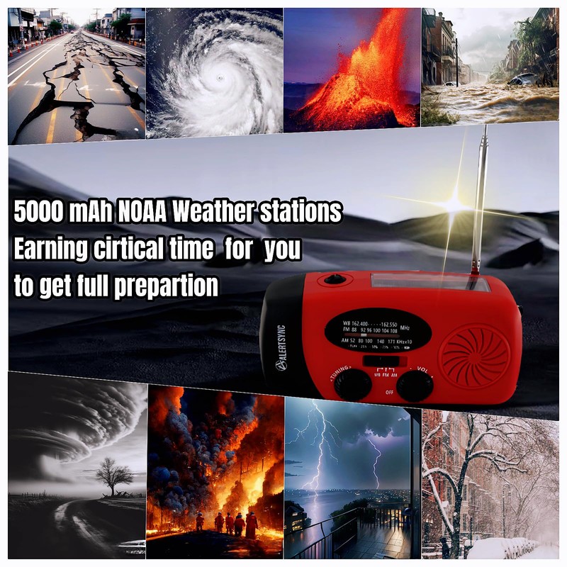 • Self Powered AM FM NOAA Emergency Weather Survival Radio - ALERTSYNC. The emergency weather Radio will keep your family safe through it all. This Weather Radio can timely report emergency weather alerts in your areas to be well prepared