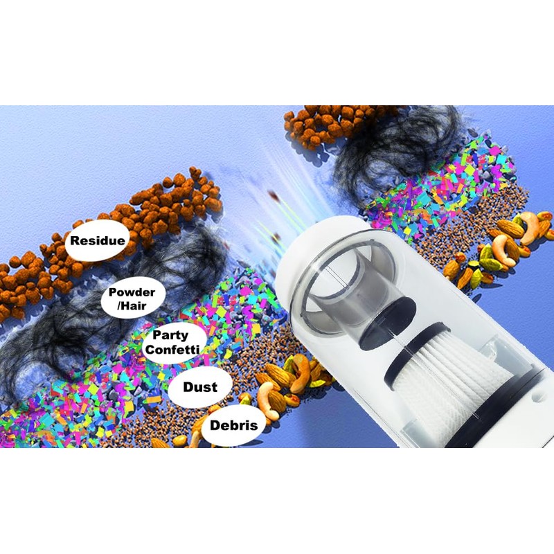 - 15000Pa Starke Reinigungsleistung: Dank der kraftvollen 15000Pa saugkraft der Staubsauger saugt schnell und mühelos Staub und Flüssigkeiten. Ob bei Krümeln, Staub oder Tierhaaren, der Handstaubsauger nimmt jeglichen Dreck mühelos in schwer erreichbaren Stellen Für den kleinen Schmutz zwischendurch ist kein großes Gerät nötig.